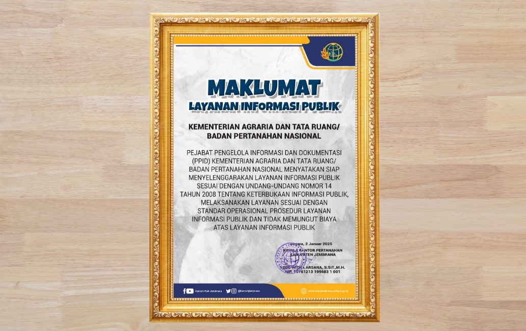 Jembrana, IndoNews8| Kantor Pertanahan Kabupaten Jembrana menegaskan komitmennya dalam menghadirkan layanan informasi publik yang cepat, mudah, transparan, serta sesuai dengan ketentuan peraturan perundang-undangan.